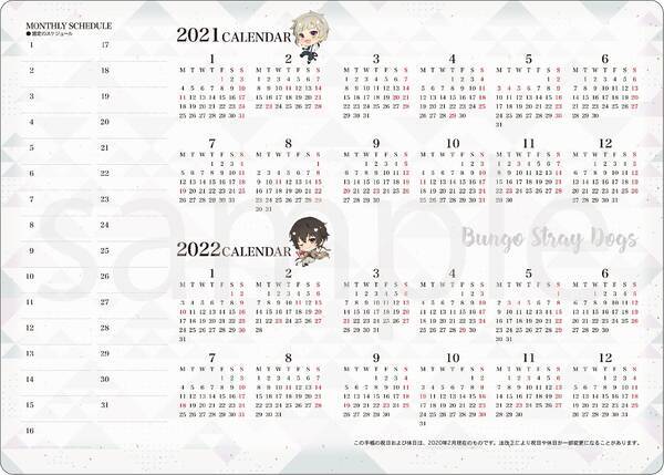 文スト マンスリースケジュール手帳が登場 キャラのイラストやモチーフアイコンが散りばめられたデザイン 年6月日 エキサイトニュース